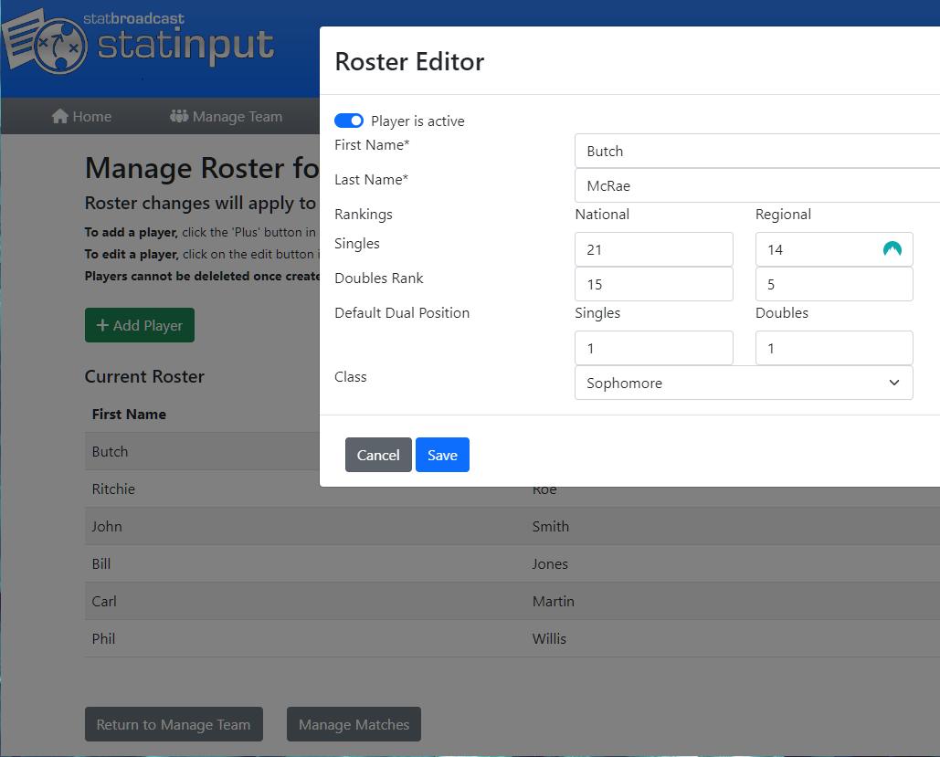 StatInput is exclusively available for schools with a StatBroadcast academic year subscription and is included with StatBroadcast Academic Year Plans